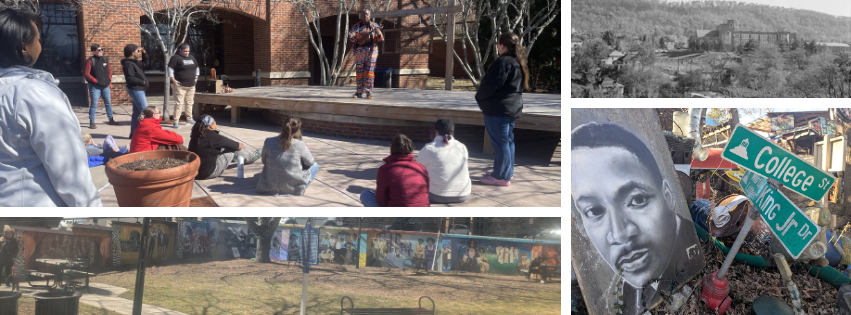 About 40 YWCA staff recently spent an afternoon on a guided tour of Black Asheville with Hood Huggers International, a community-centered organization focused on art, sustainability, and social enterprise in the Black community to build up Affrilachia (the culture and lived experiences of Black communities in Appalachia, highlighting African American contributions to the region). The projects and plans of Hood Huggers are diverse and far reaching, but on this day, we got a sampling of the kinds of things that Hood Huggers, and founder DeWayne Barton, are passionate about.